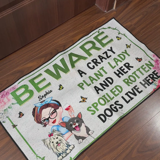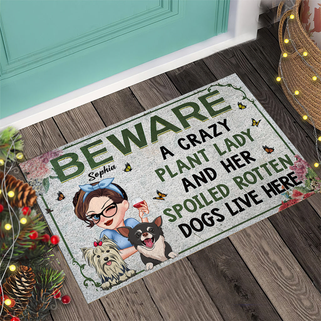 A Crazy Plant Lady & Her Spoiled Rotten Dogs Live Here - Personalized Gardening Doormat