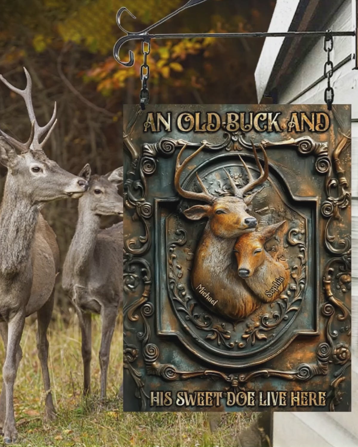 An Old Buck And His Sweet Doe Live Here - Personalized Hunting Rectangle Metal Sign