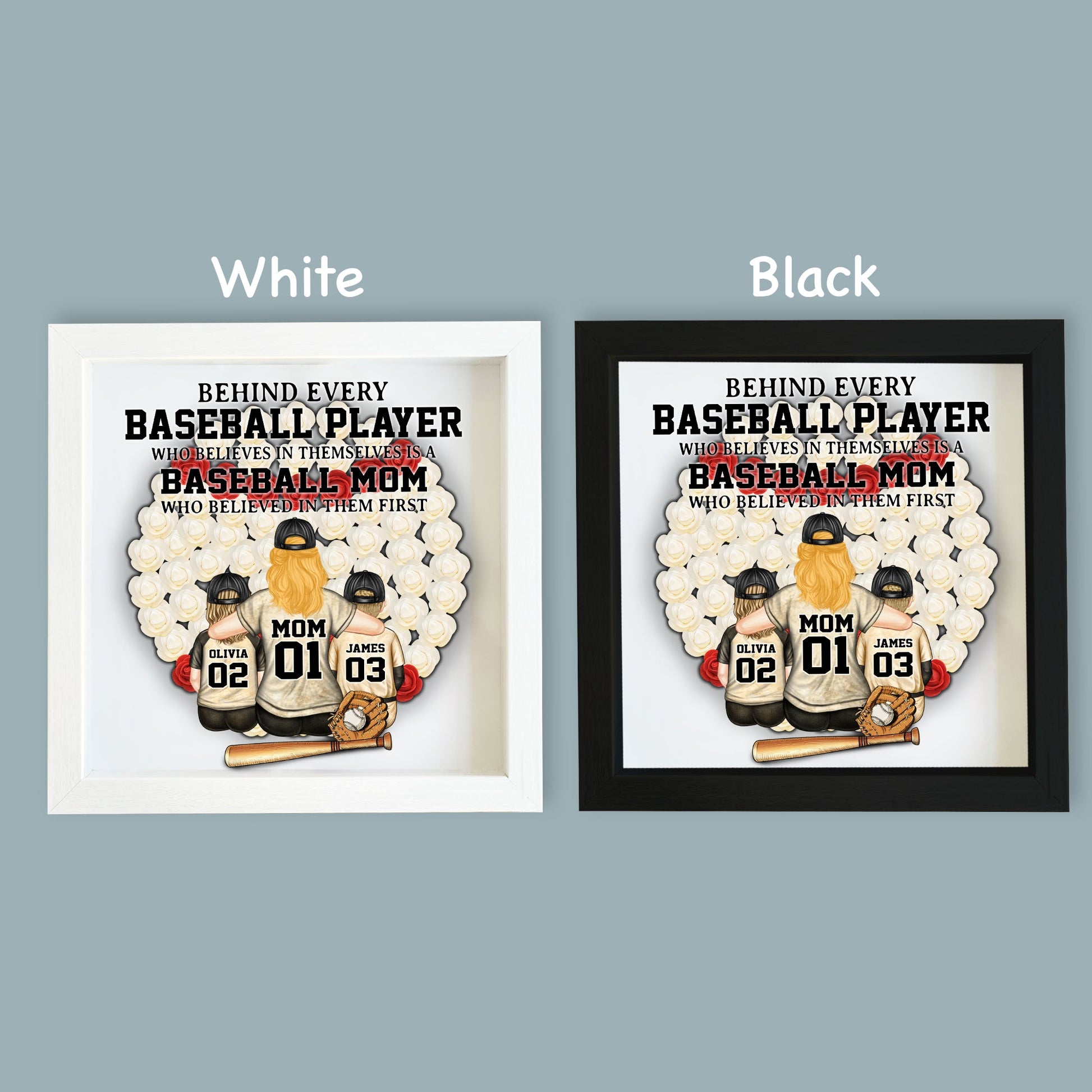 Baseball Mom - Personalized Mother Custom Shaped Flower Shadow Box