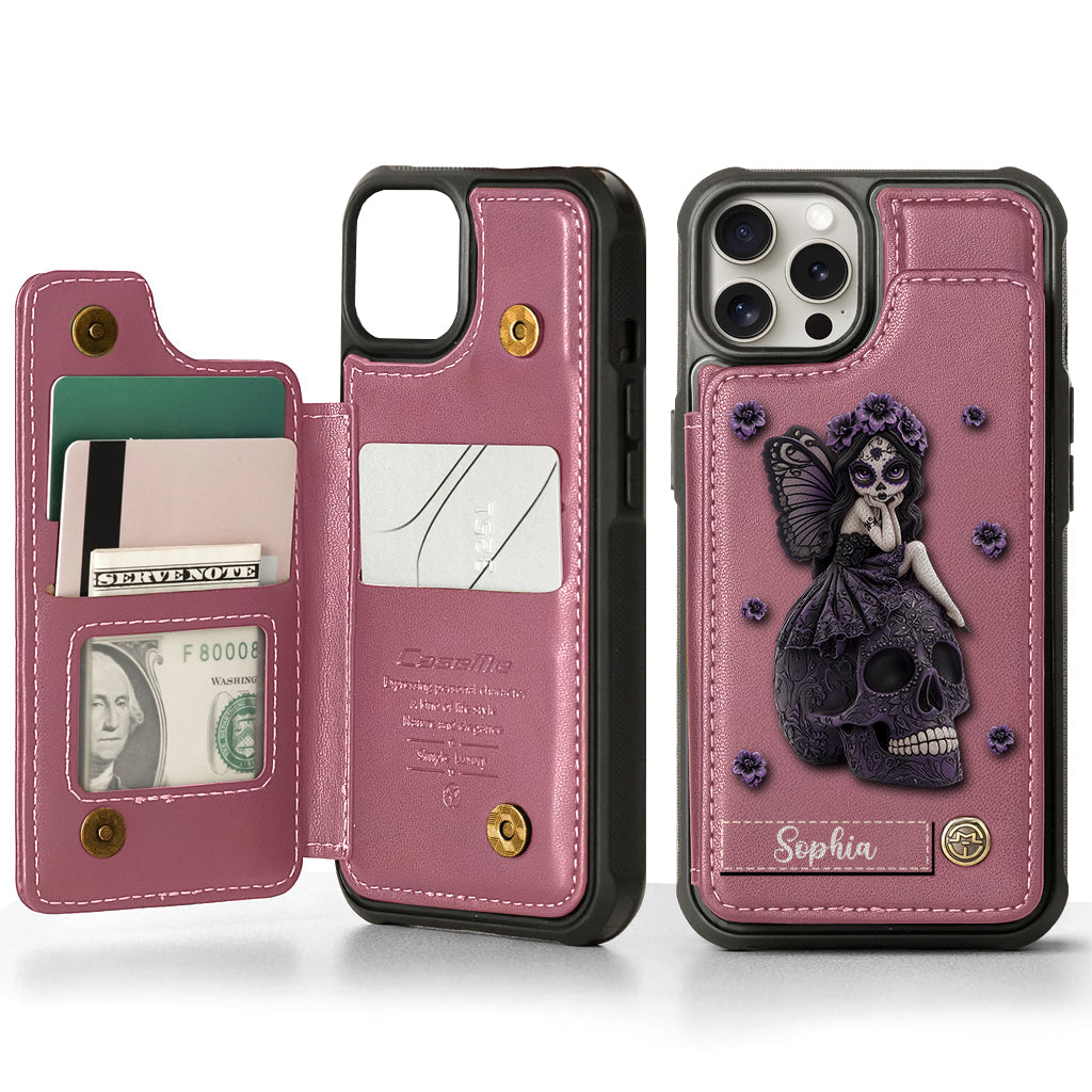 Beautiful Gothic Fairy Girl - Personalized Skull Wallet Phone Case