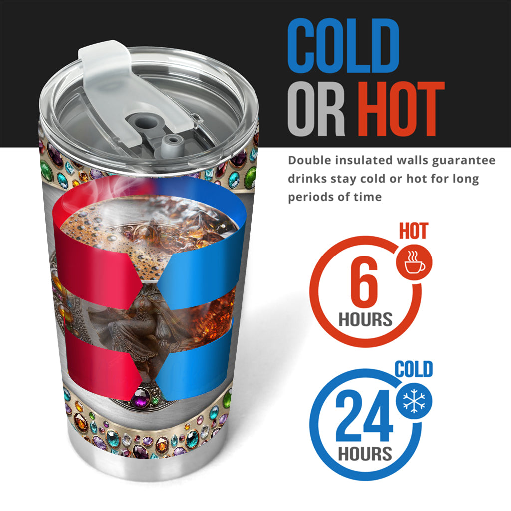 K.J. The cup came and it’s beautiful! I was very surprised at how well it keep my drinks cold. If I put ice water in it on my nightstand it will still have ice in the cup in the morning. I take it everywhere with me.