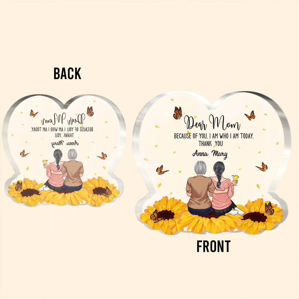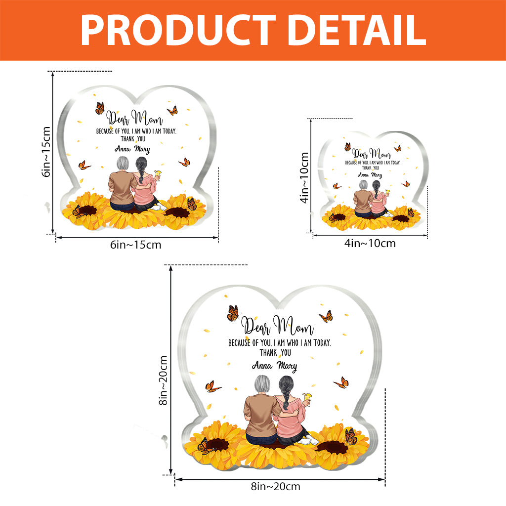 Because Of You - Personalized Mother's Day Mother Custom Shaped Acrylic Plaque