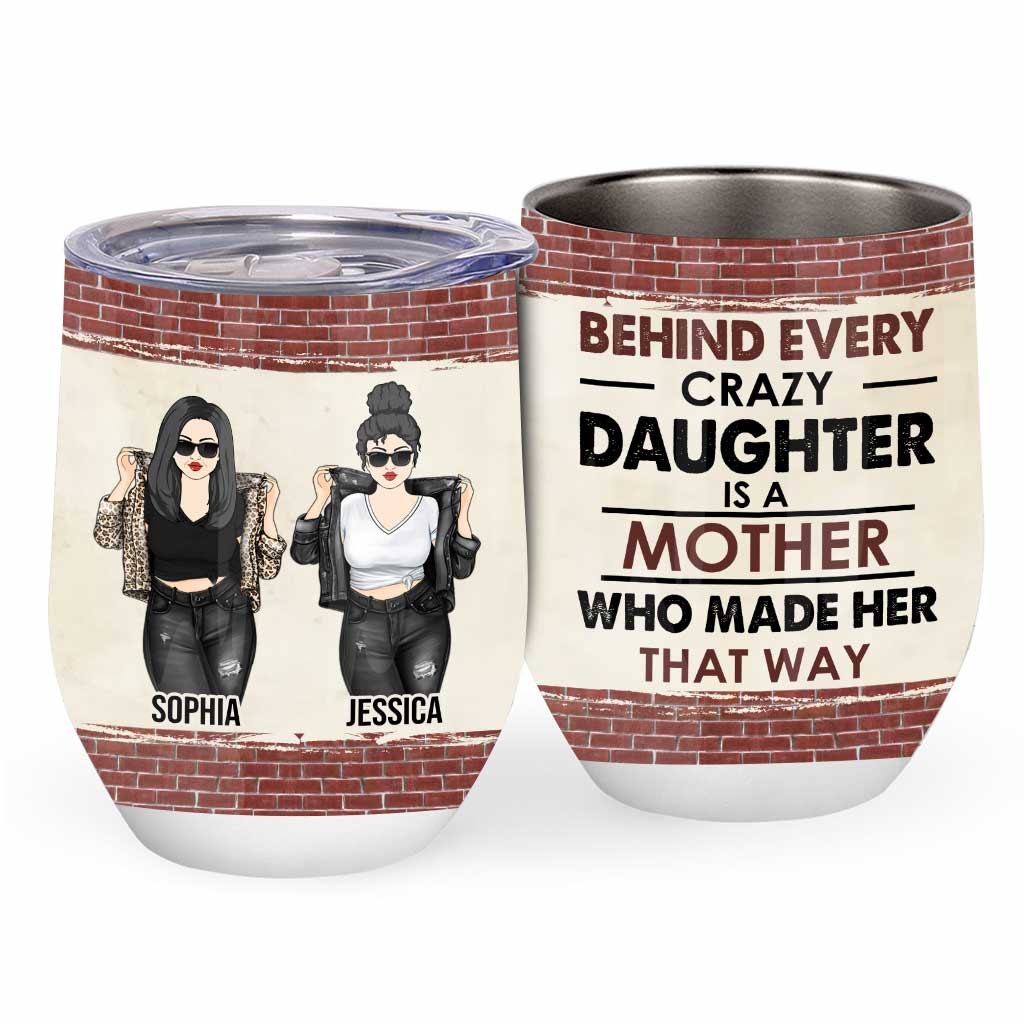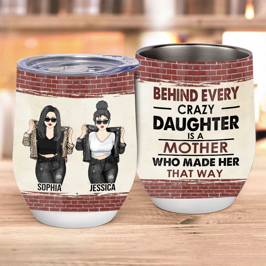 Behind Every Crazy Daughter - Personalized Mother Wine Tumbler