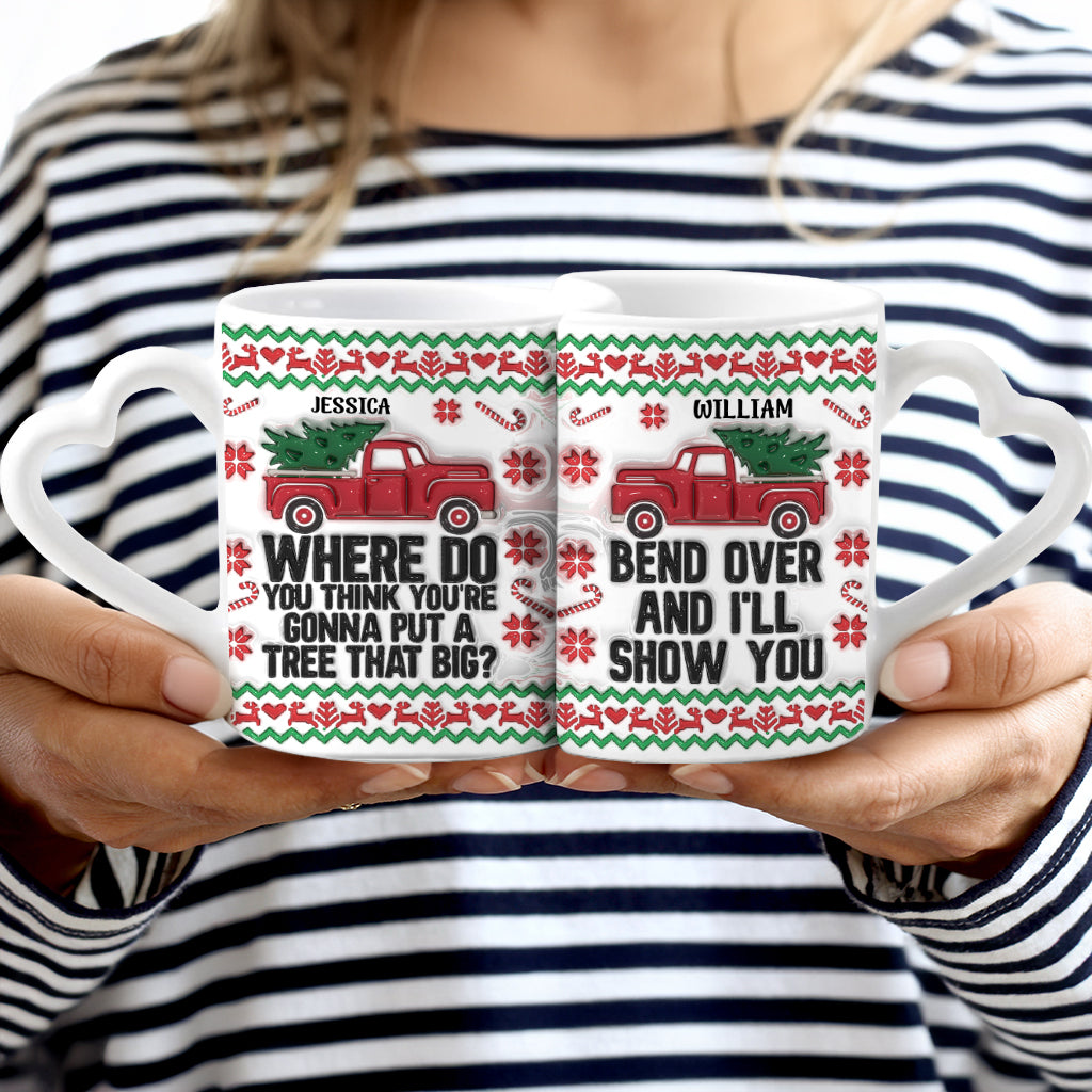 Bend Over And I Will Show You - Personalized Couple Matching Heart Handle Mug