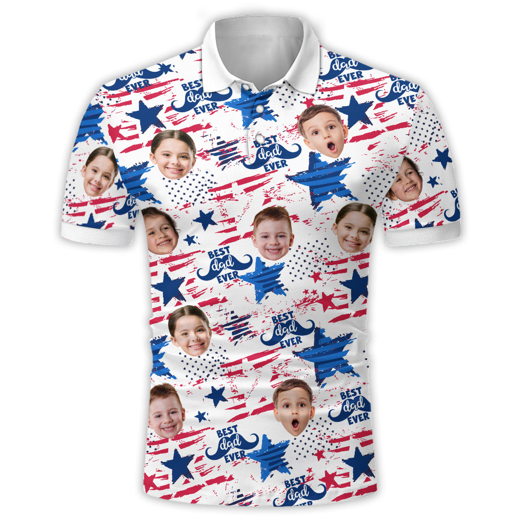 - The custom print polo shirt has 3 transparent buttons and a simple wide collar.
