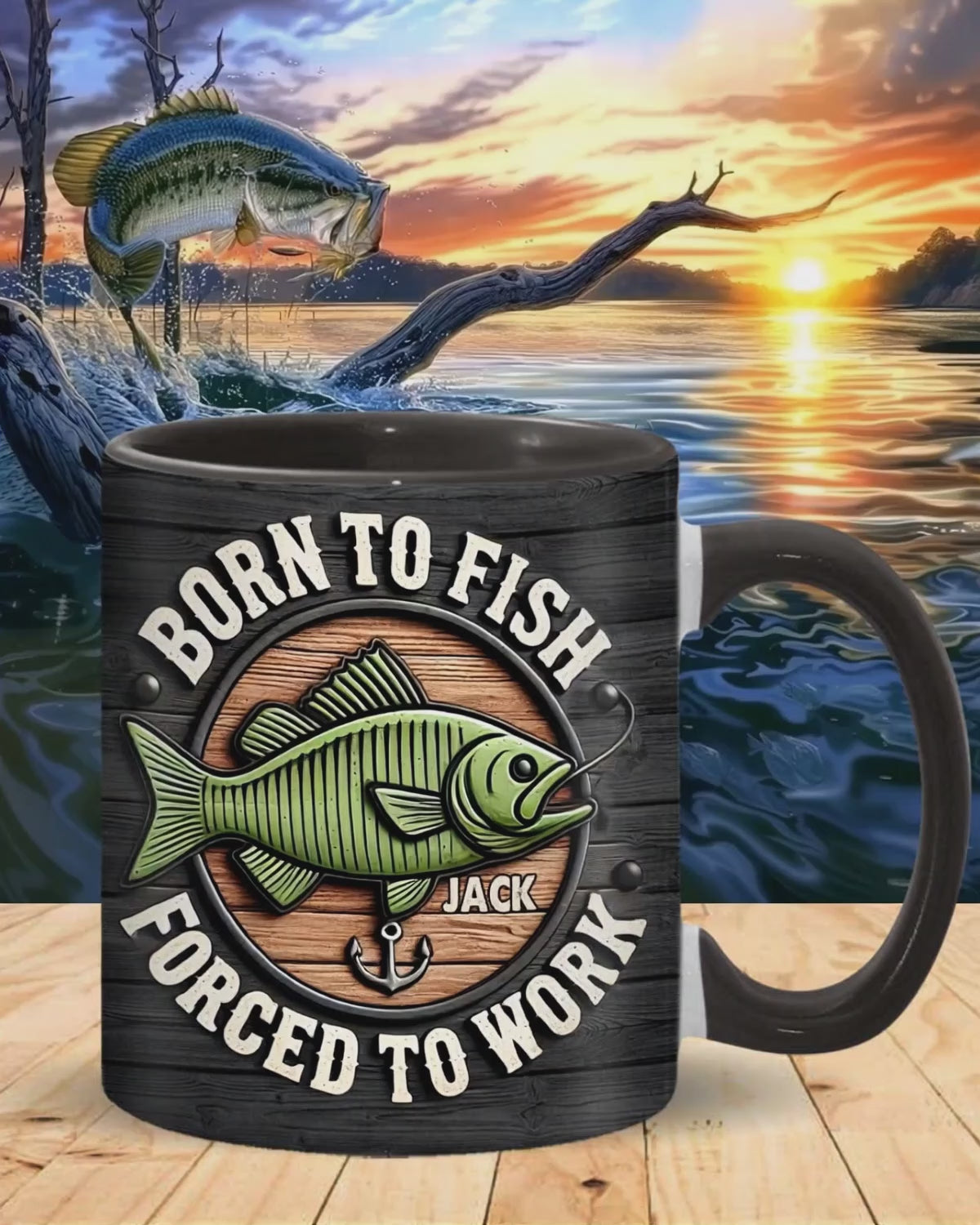 Born to Fish Forced to Work - Personalized Fishing Accent Mug