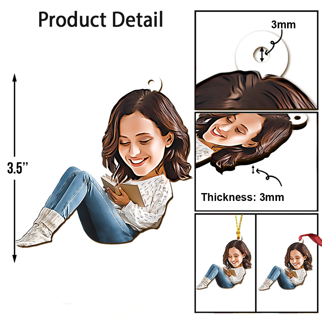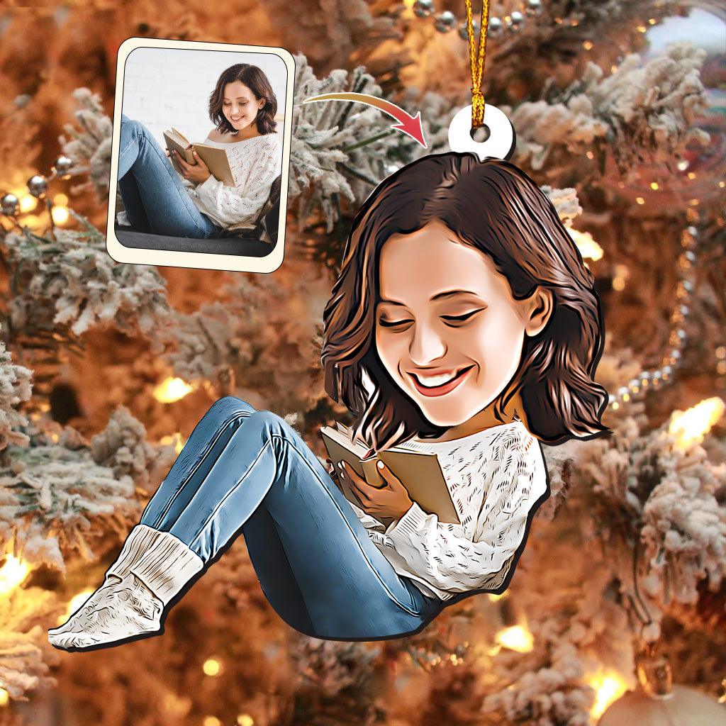 Caricature Book Lovers Portrait - Personalized Book Ornament