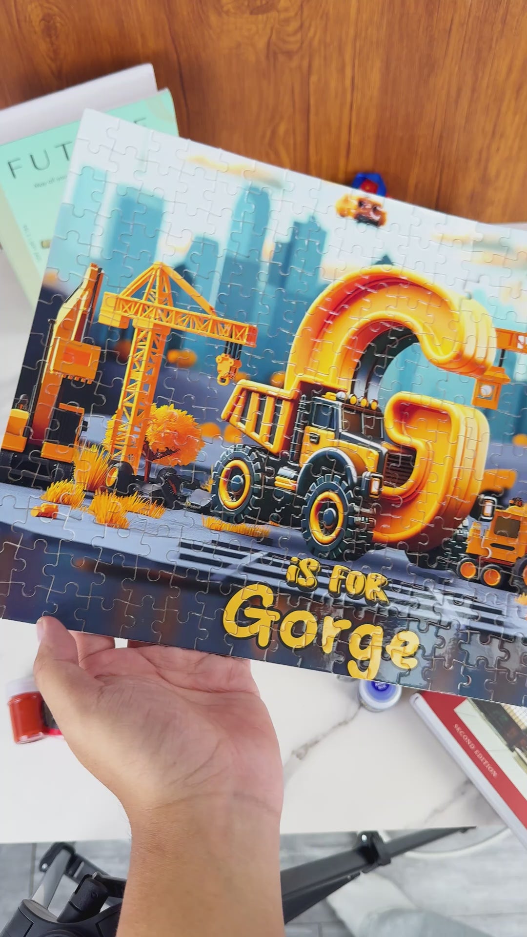 Construction Vehicles Letters - Personalized Kid Jigsaw Puzzle