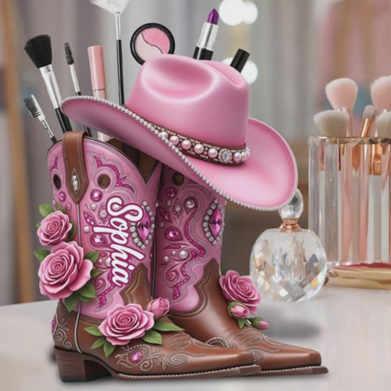 Cowgirl Boots - Personalized Cowgirl Wooden Makeup Brush Holder