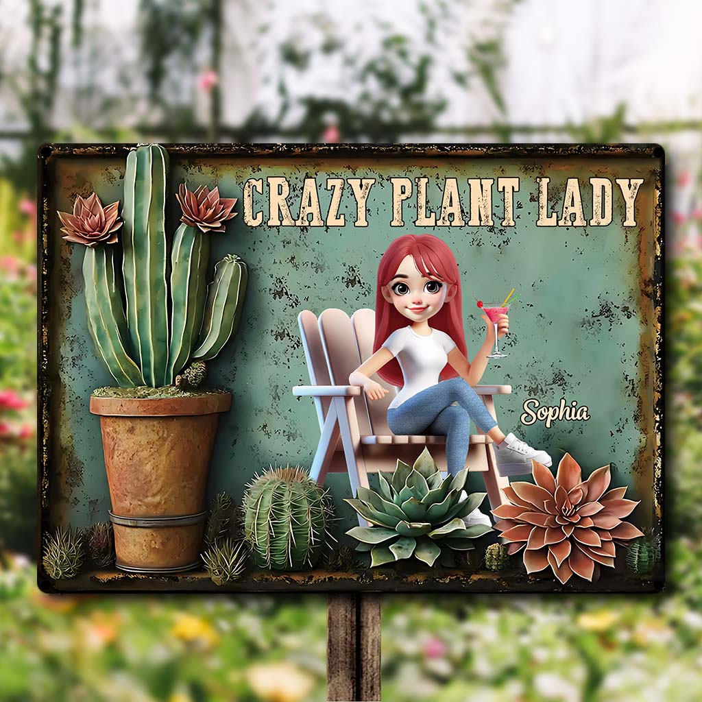 Crazy Plant Lady - Personalized Gardening Rectangle Metal Sign