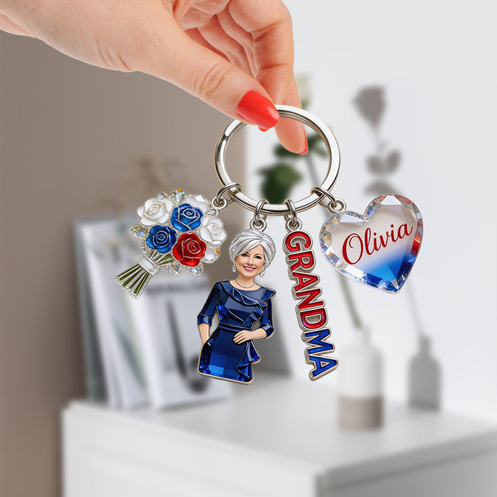 Custom Any Photo American Mom/Grandma - Personalized Grandma Premium Keychain With Charms