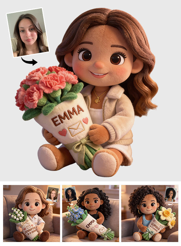Custom Any Photo Birthmonth Flower - Personalized Self Love Faux Fur Shaped Pillow
