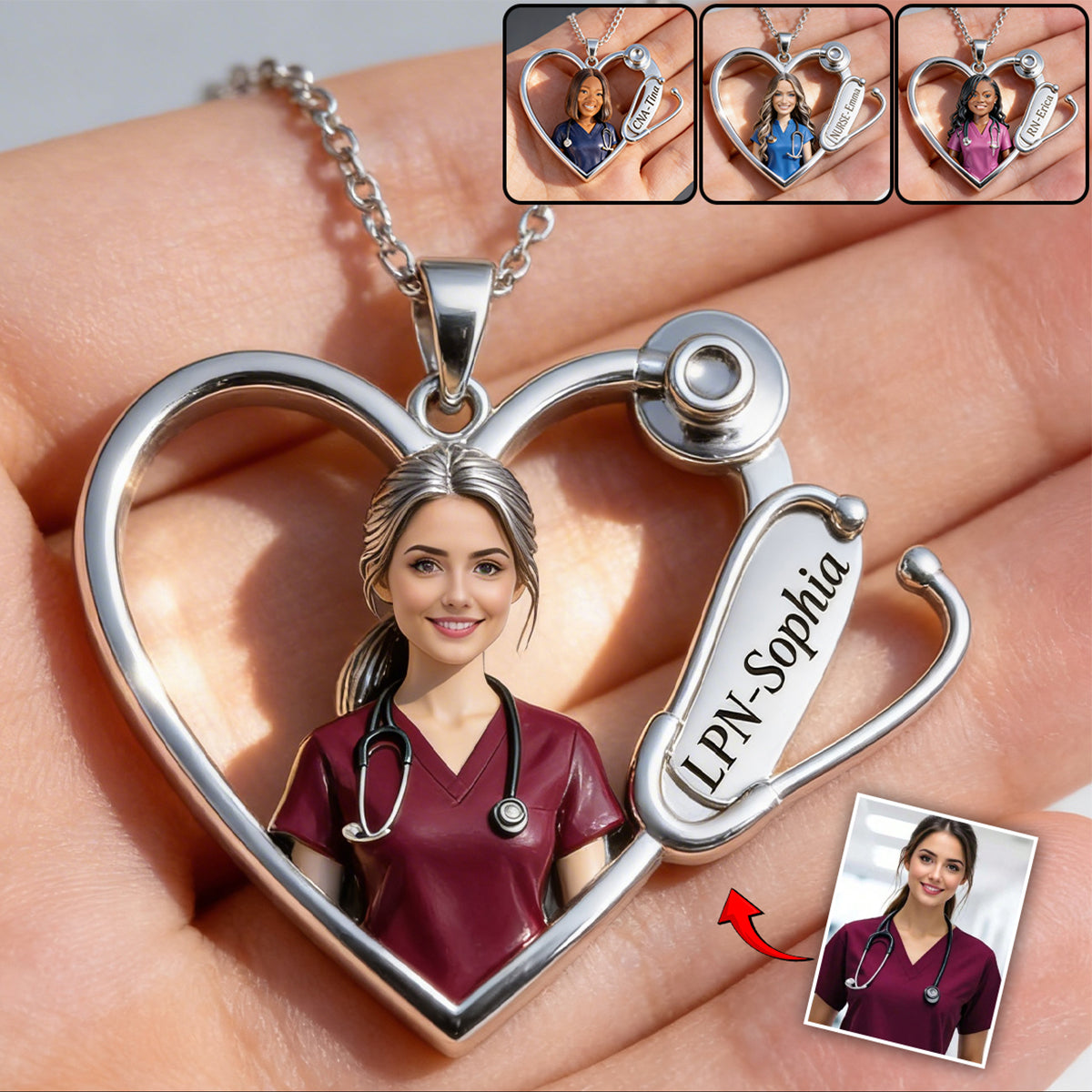Custom Any Photo Love Nurse Life - Personalized Nurse Shaped Metal Pendant Necklace