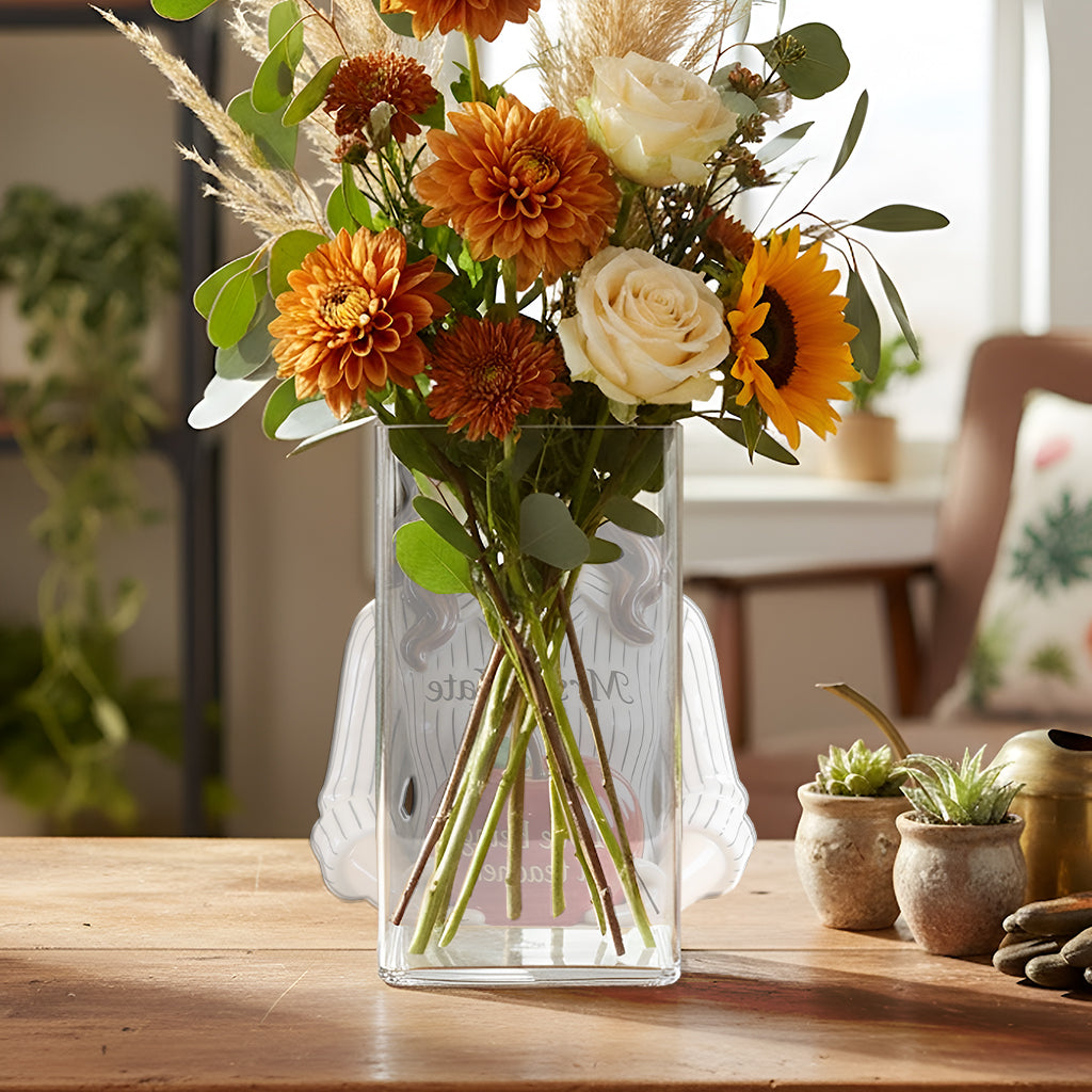 The front acrylic panel is printed on one side with vivid, high-quality colors, adding depth and personality while keeping a clean, modern look. The pot’s height and proportions make it suitable for small plants, fresh flowers, dried arrangements, or artificial bouquets, making it a flexible décor piece for homes, offices, or gift-giving.