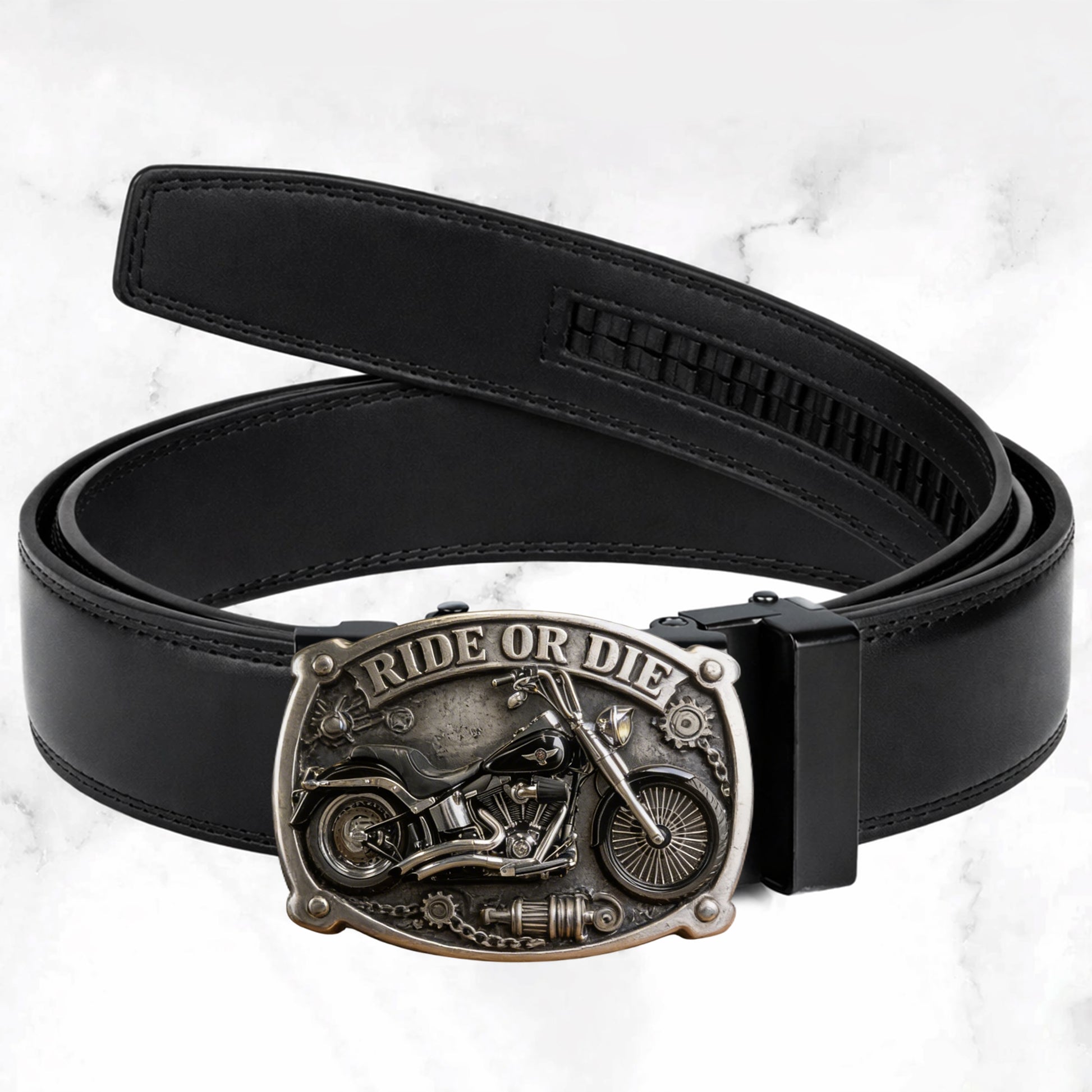 Adjustable Ratchet System: This belt uses an innovative ratchet mechanism that allows smooth, precise adjustments without traditional belt holes. Simply slide the belt through the buckle to lock it in place and press the release lever to loosen.