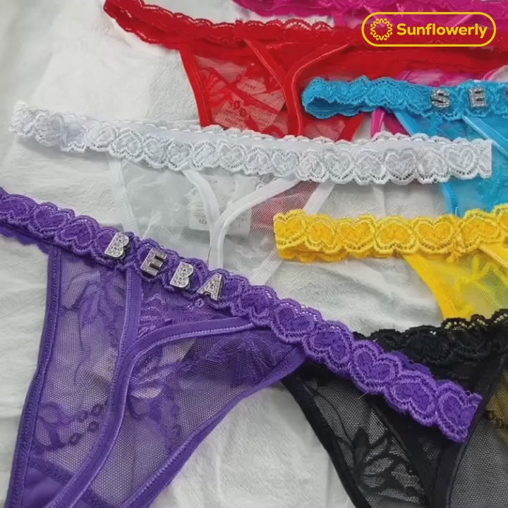 Indulge your girlfriend with personalized gift that exudes elegance and allure. Our Custom Name Crystal Letter Sexy Lace Bikini Panties are designed to make her feel confident and beautiful. Add her name in stunning crystal letters to create a unique and intimate surprise.