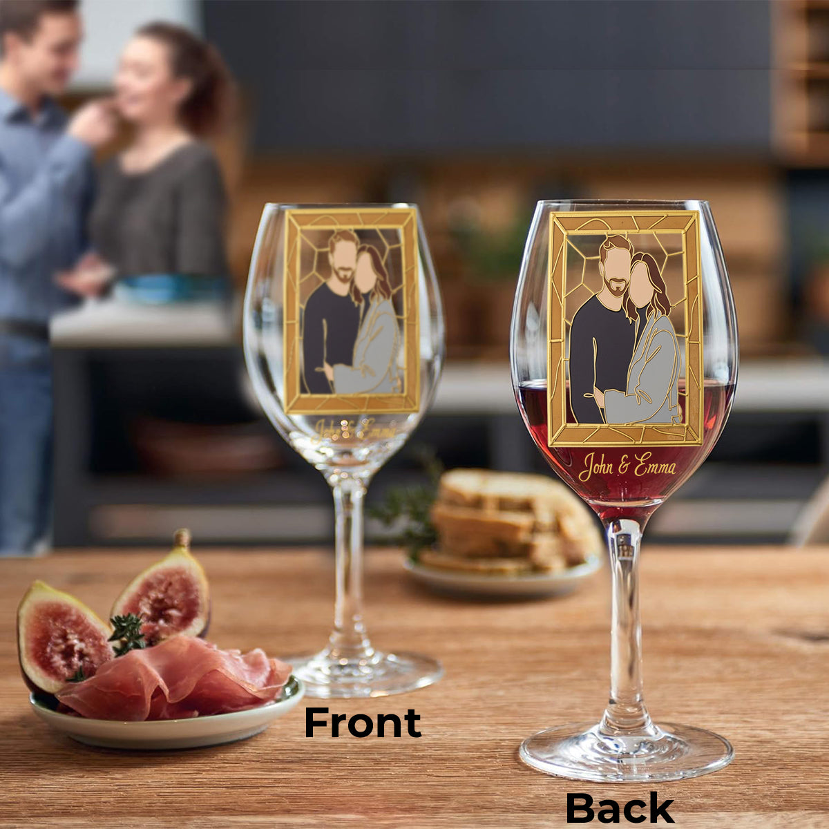 Custom One Line Art From Photo, Hand Painted Stained Glass Style - Personalized Couple Wine Glass With Long Stem