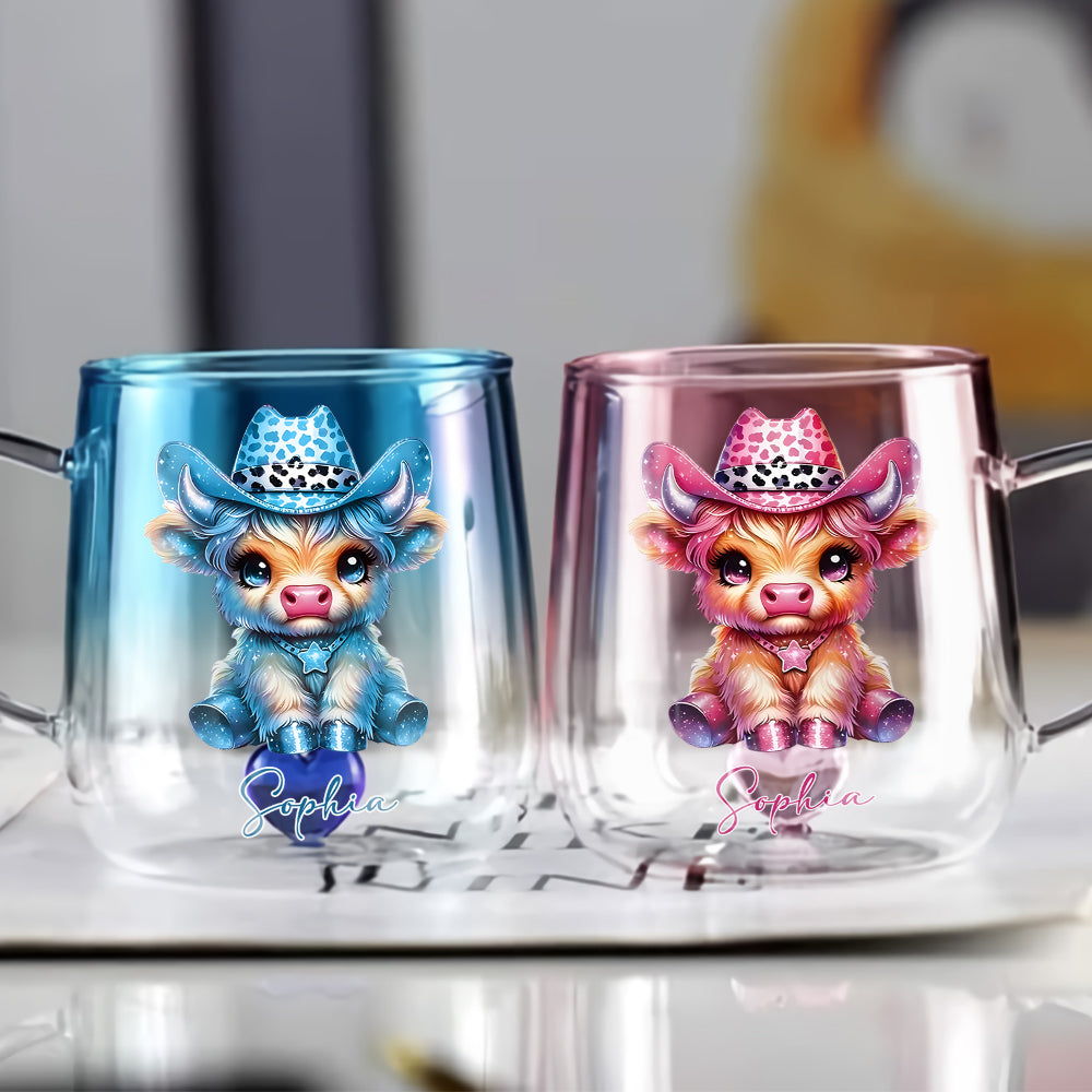 Cute Highland Cow - Personalized Highland Cow Gradient Glass Mug
