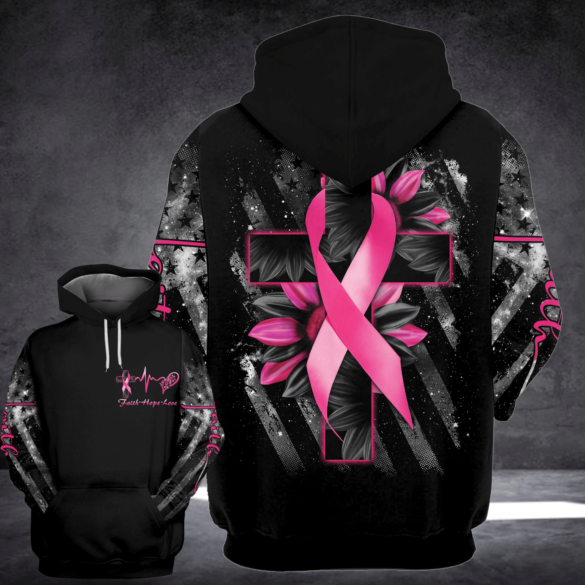 Faith Cross Sunflower Breast Cancer - Breast Cancer Awareness All Over T-shirt and Hoodie 0822