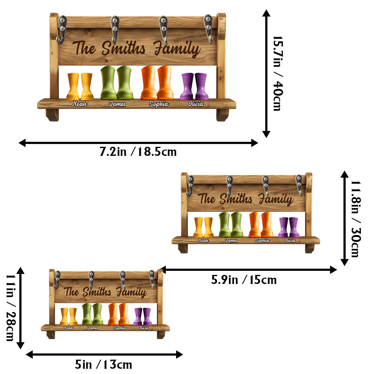 Family Funny Keyrack, Rain Boots Family - Personalized Family Custom Shaped Key Rack