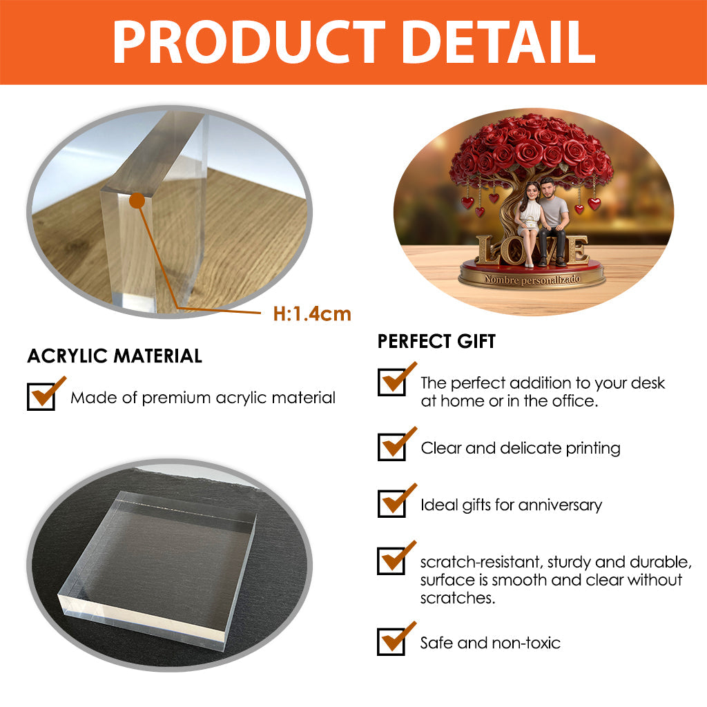Figura De Pareja Personalizada Bajo Un Árbol De Rosas - Placa Acrílica Personalizada Con Forma Personalizada Para Pareja