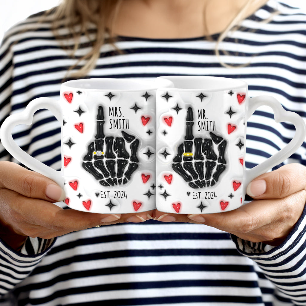 Funny Anniversary - Personalized Husband And Wife Matching Heart Handle Mug