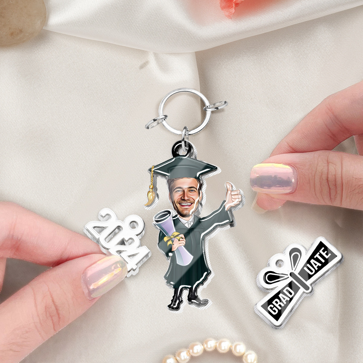 Funny Graduate Caricature - Personalized Graduation Keychain with Charms
