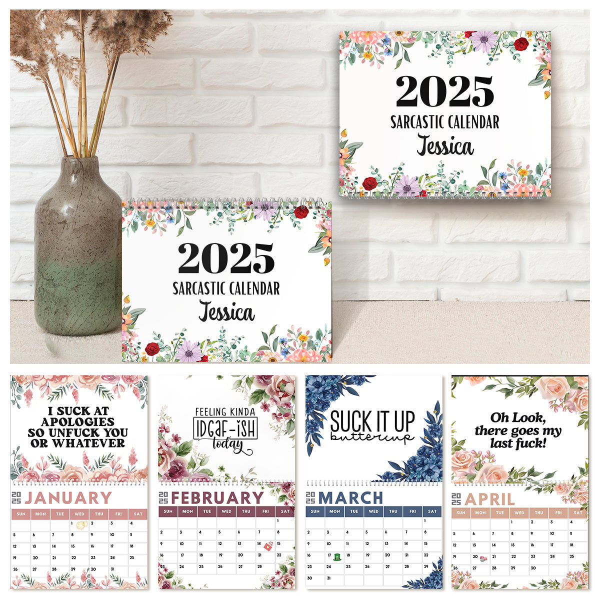 Funny Office Humor, Work Swear Affirmations - Personalized Colleague Wall Calendar & Desk Calendar