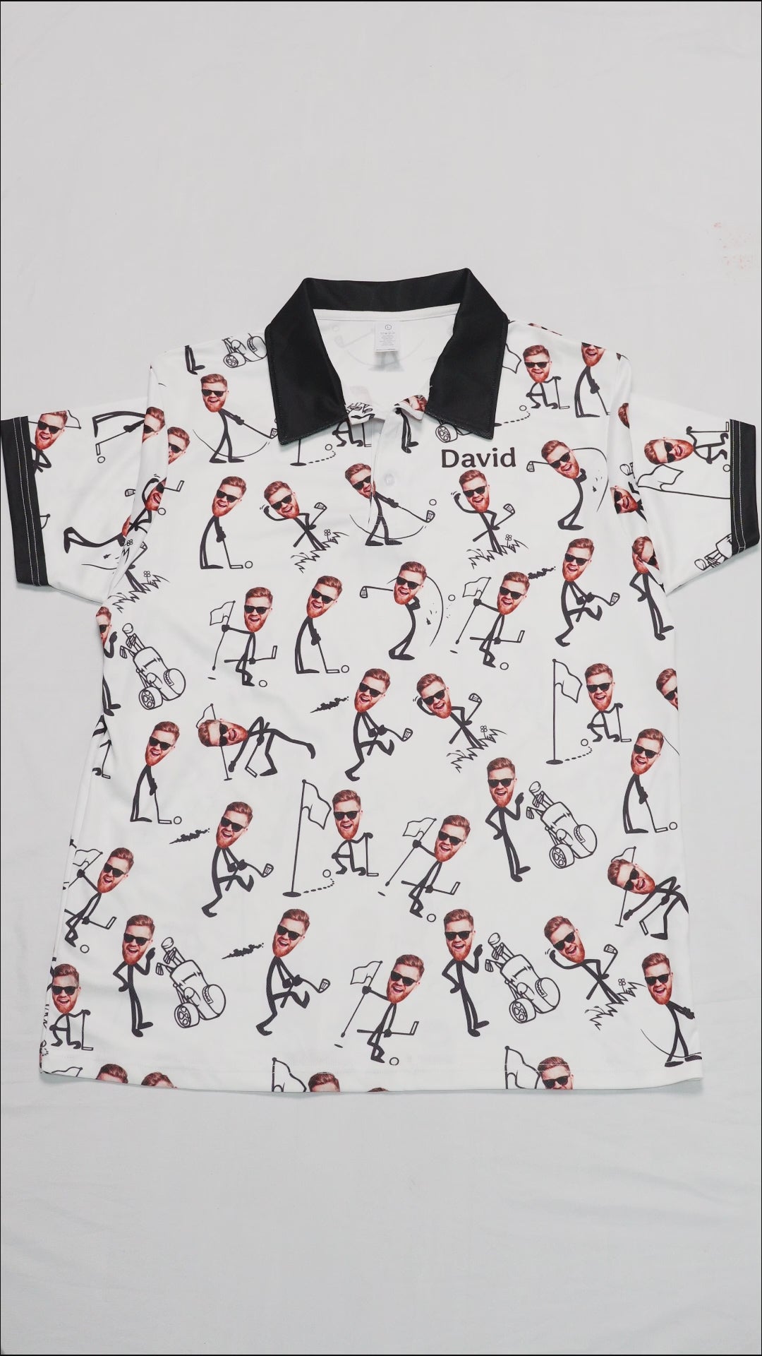- The custom print polo shirt has 3 transparent buttons and a simple wide collar.