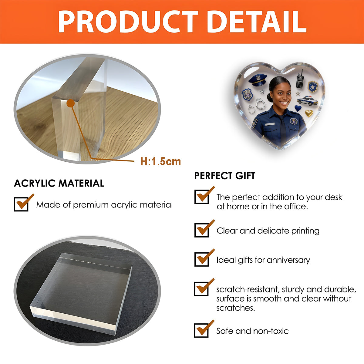 The acrylic plaque is crafted with a thick, sturdy structure and smooth edges, giving it a premium feel while remaining compact and easy to display. The accompanying card is designed in a fixed size to perfectly complement the plaque, making it suitable for gifting, mailing, or personal keepsakes.