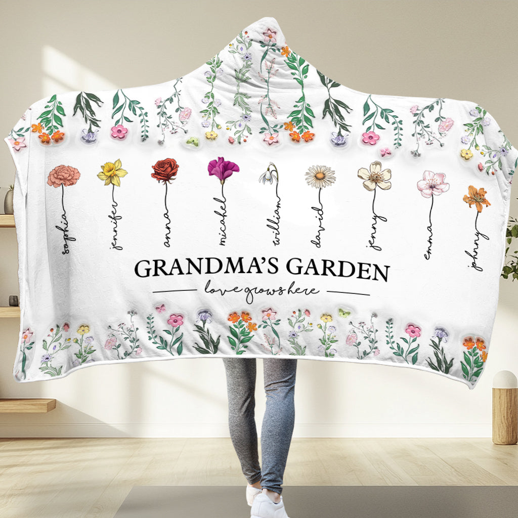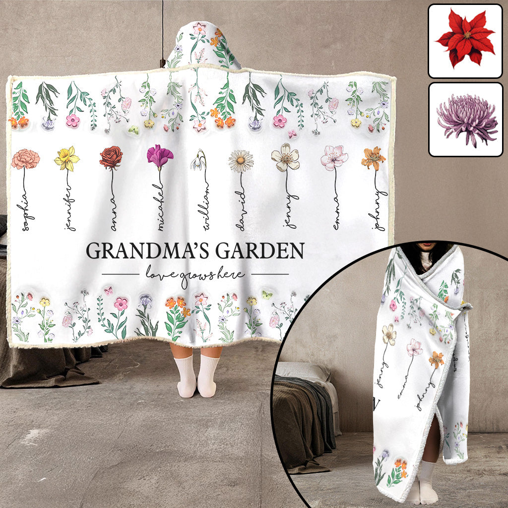 Grandma Garden - Personalized Grandma Hooded Blanket