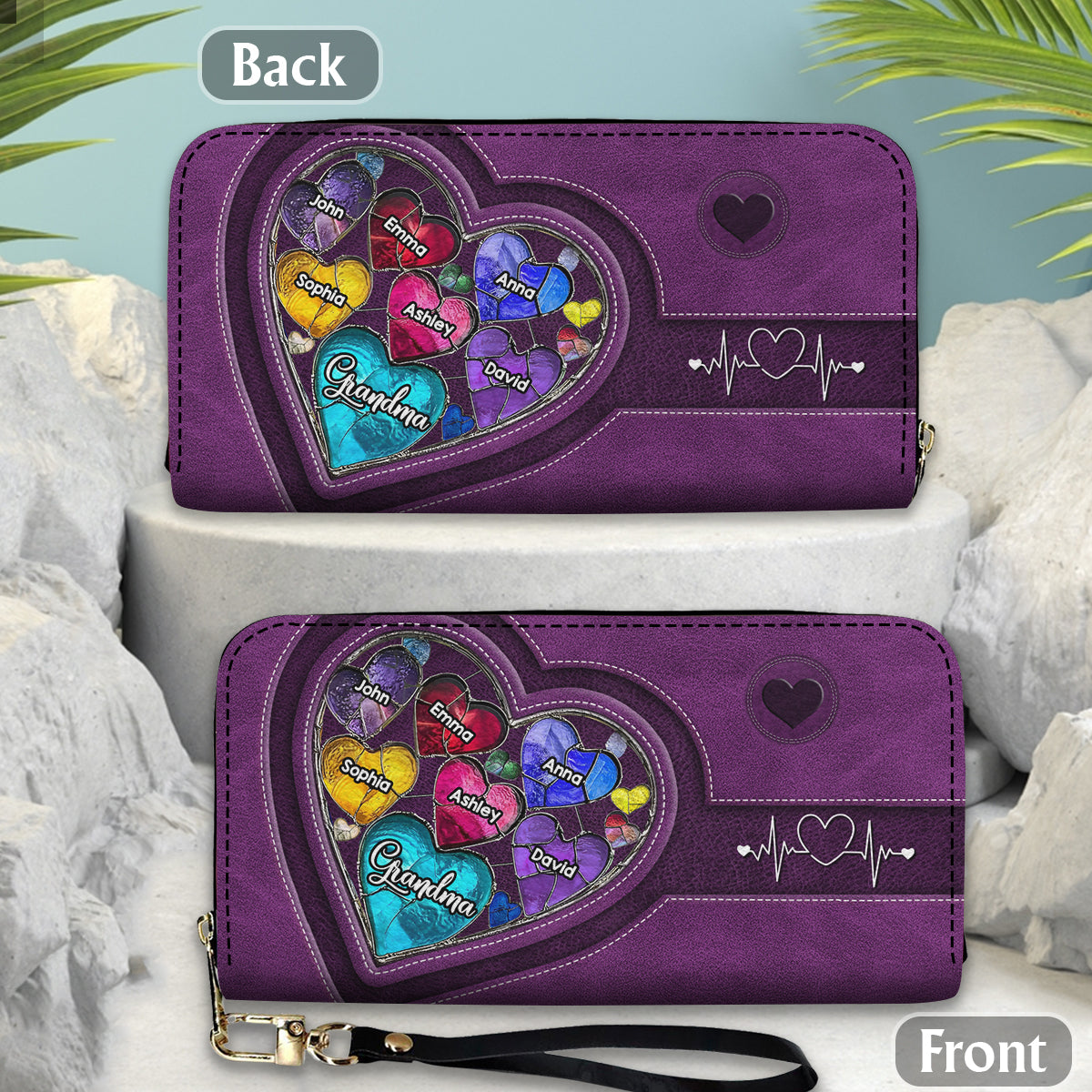 Grandma's Mom's Sweethearts - Personalized Grandma Leather Long Wallet