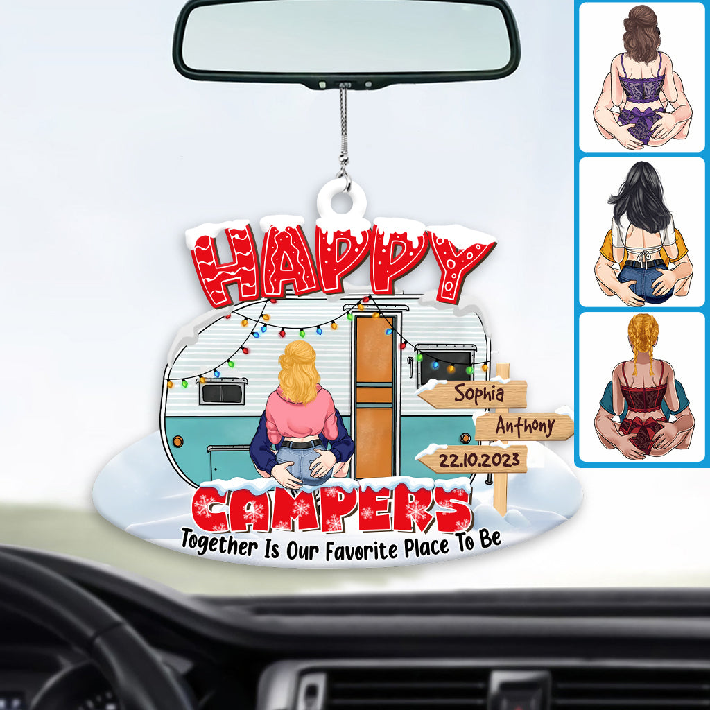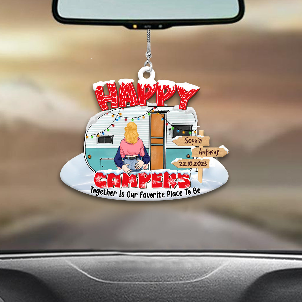 Happy Campers - Camping gift for husband, wife, boyfriend, girlfriend - Personalized Car Ornament