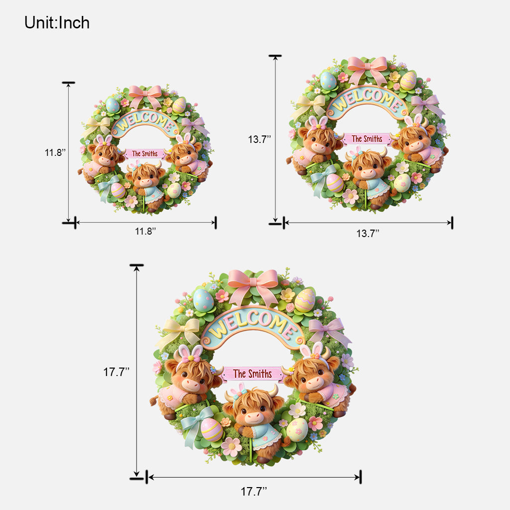 Happy Easter's Day Cute Highland Cow - Personalized Highland Cow Custom Shaped Wood Sign