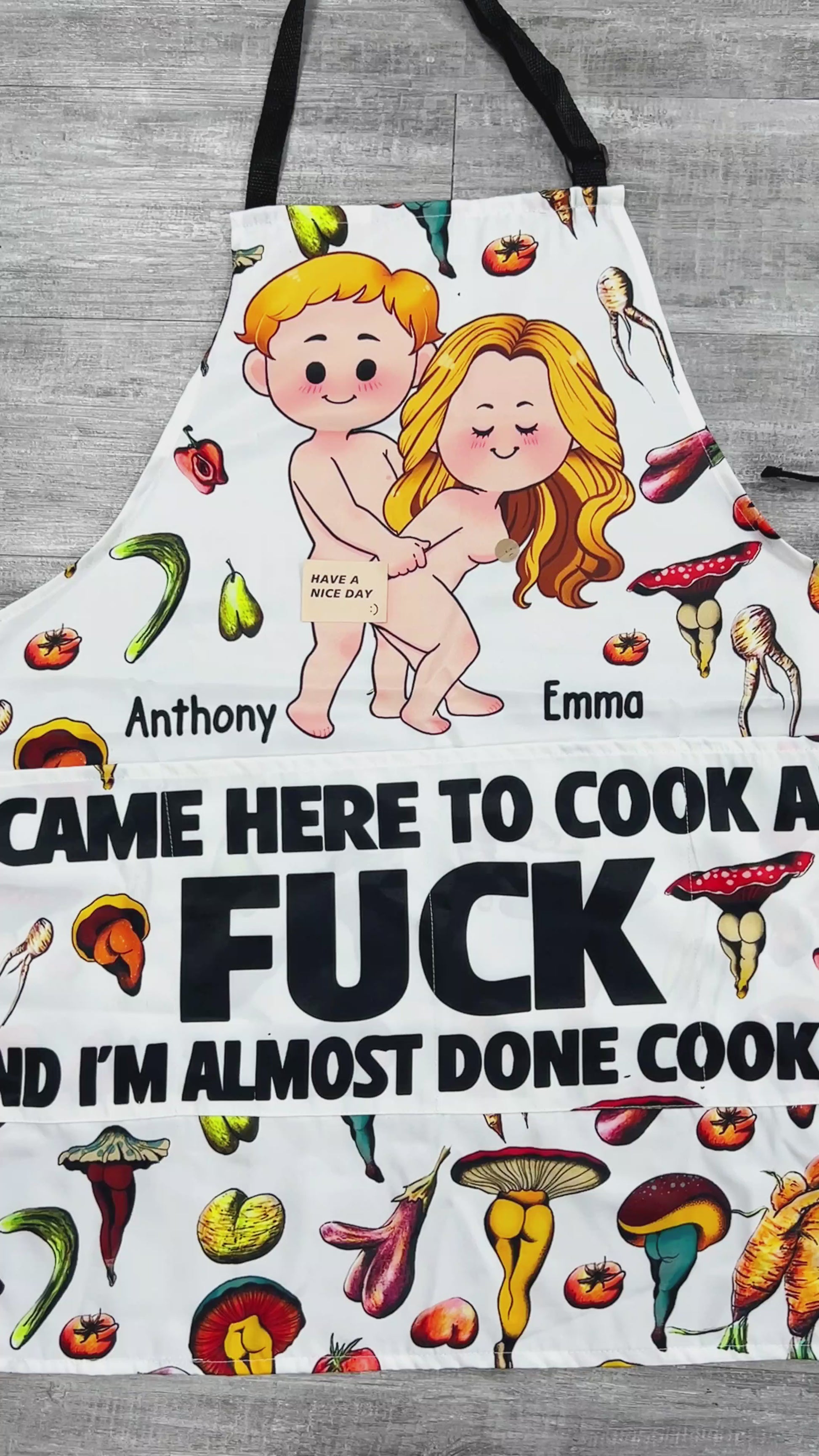 - Each apron is custom printed, cut and sewn just for you when you place your order – there may be small differences in the design on the seams due to the custom nature of the production process!