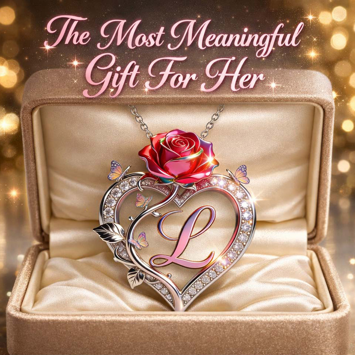 Inital Necklace, Birth Month Flowers - Personalized Birth Month Flower Shaped Metal Pendant Necklace