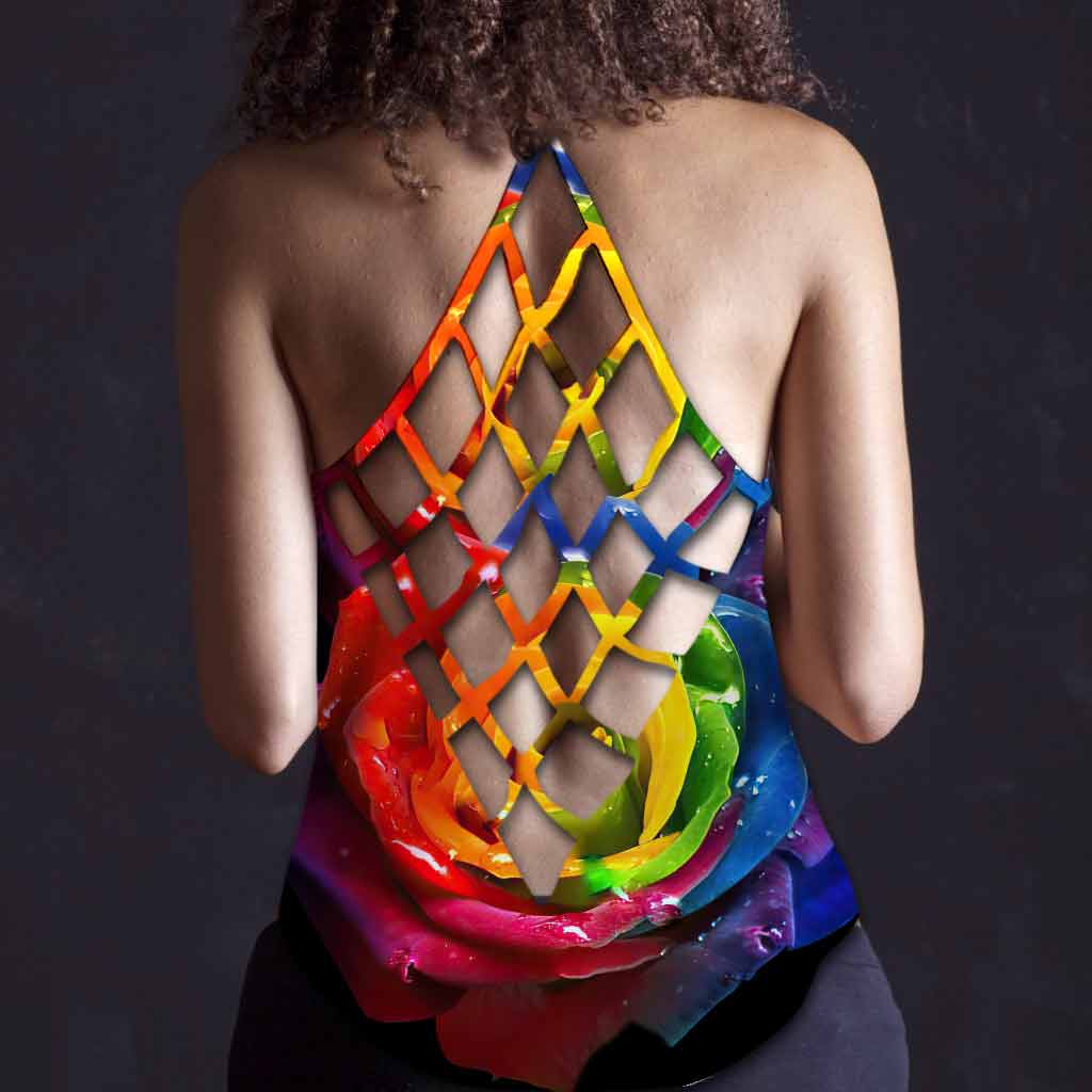 Cross Tank Top: Raw-cut back lattice is printed