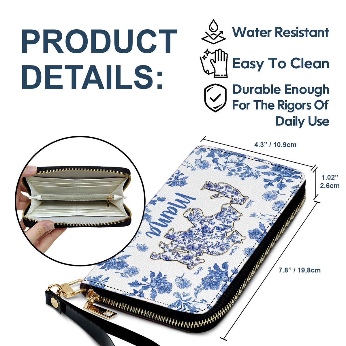 - Convenient design: This product is connected to a removable wrist strap. The zipper-around design ensures that nothing falls out and also makes it easy to access your cards or money.