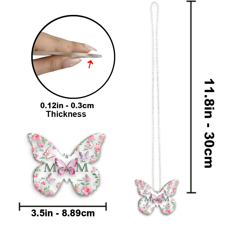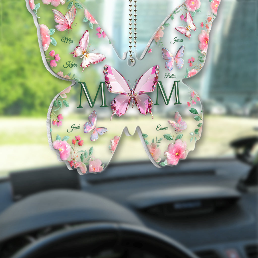 Mom And Children Butterflies - Personalized Mother Transparent Car Ornament
