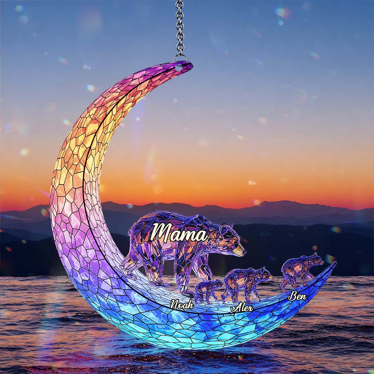 Mom We Love You To The Moon And Back - Personalized Mother Window Hanging Suncatcher Ornament