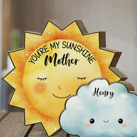 Mom You Are My Sunshine Sun And Clouds - Personalized Mother Shaped Wooden Puzzle