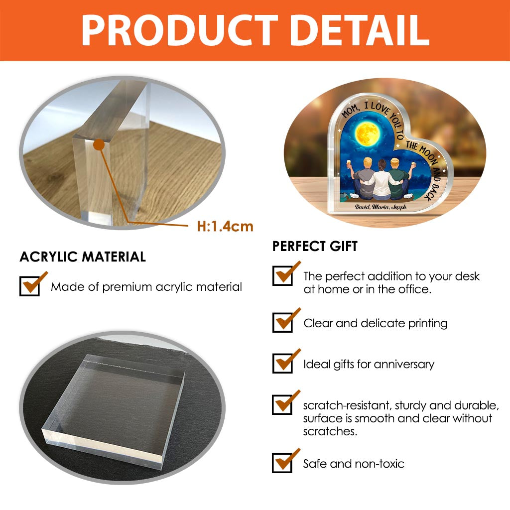 Moon And Back - Gift for mom, grandma - Personalized Custom Shaped Acrylic Plaque