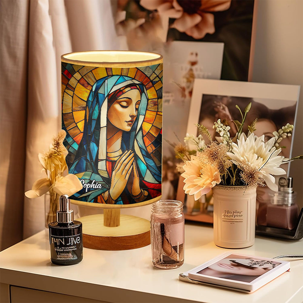 Mother Maria - Personalized Christian Table Lamp with Wood Base