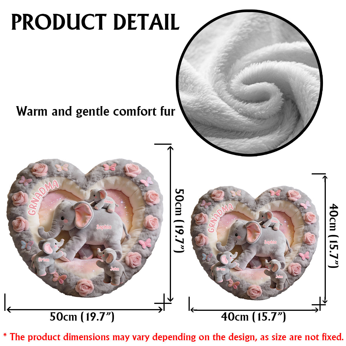 Nana Elephant Gift For Mom, Grandma - Personalized Grandma Faux Fur Shaped Pillow