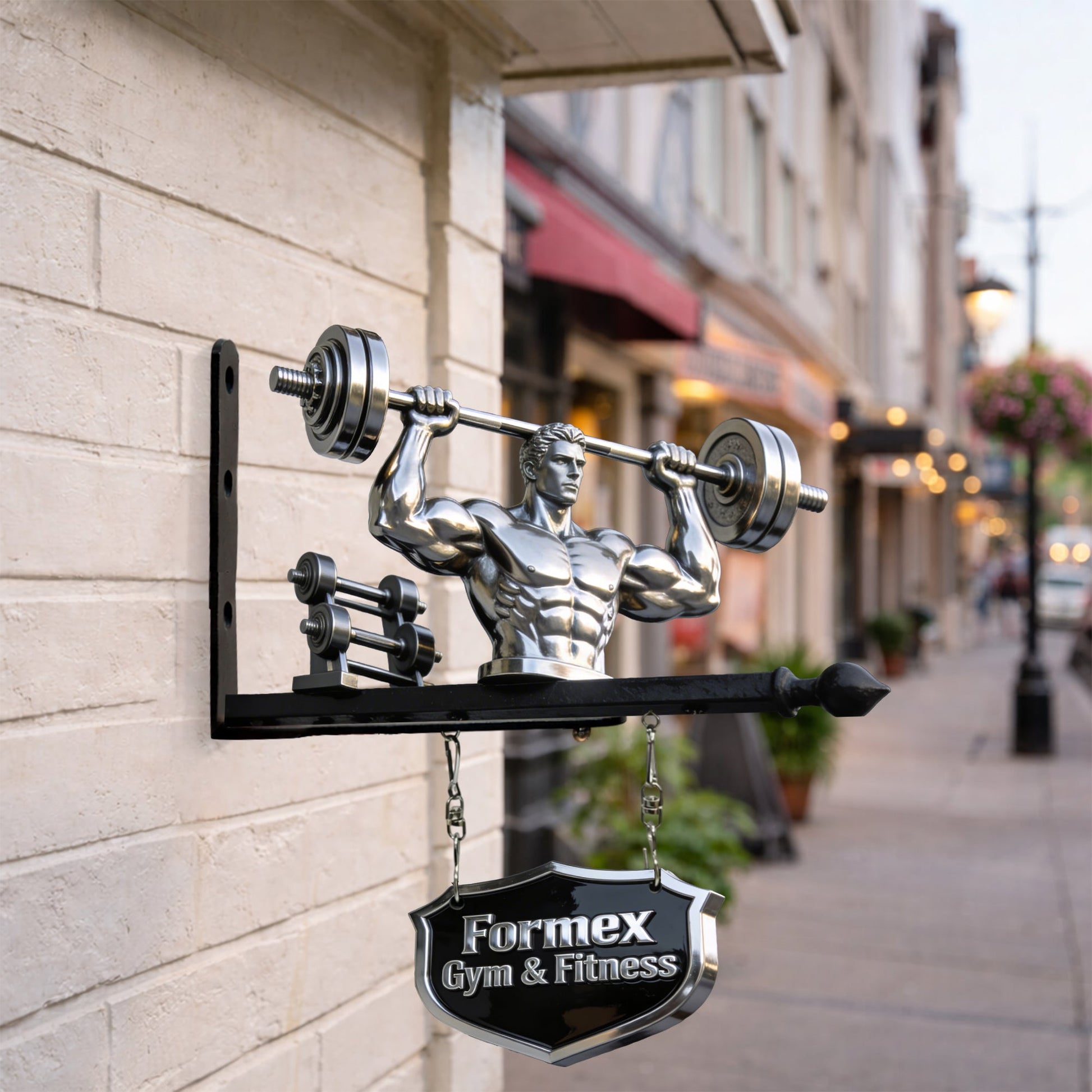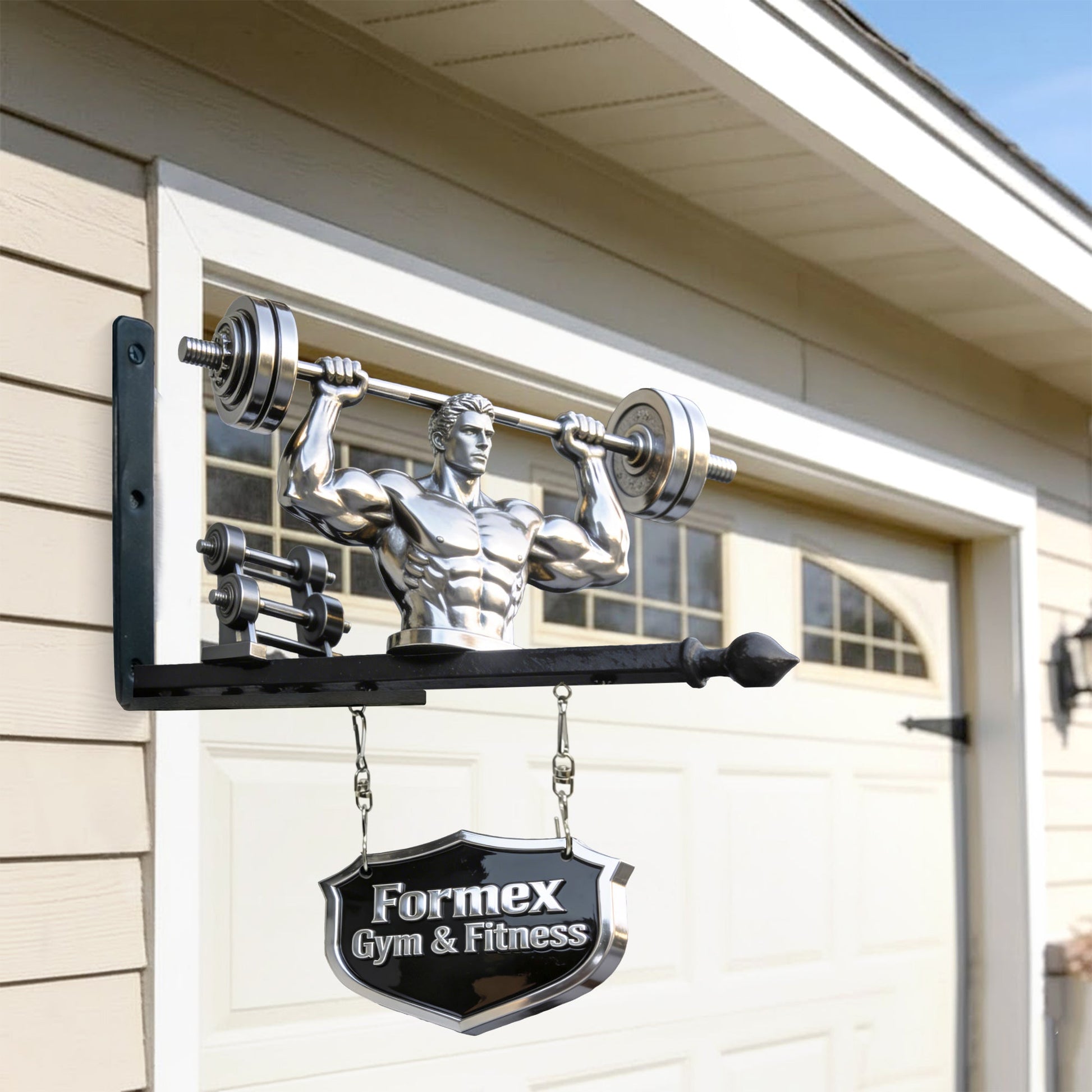 - Bottom hanging sign is optional and attached with metal chains for a classic swinging effect.