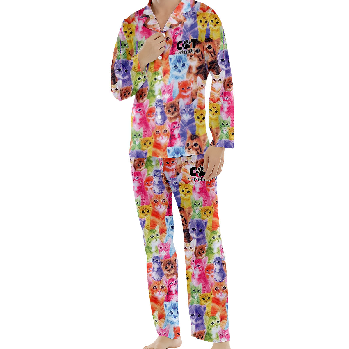 Photo Insert Transferring Into Colorful Style - Personalized Cat Button Down Pajamas