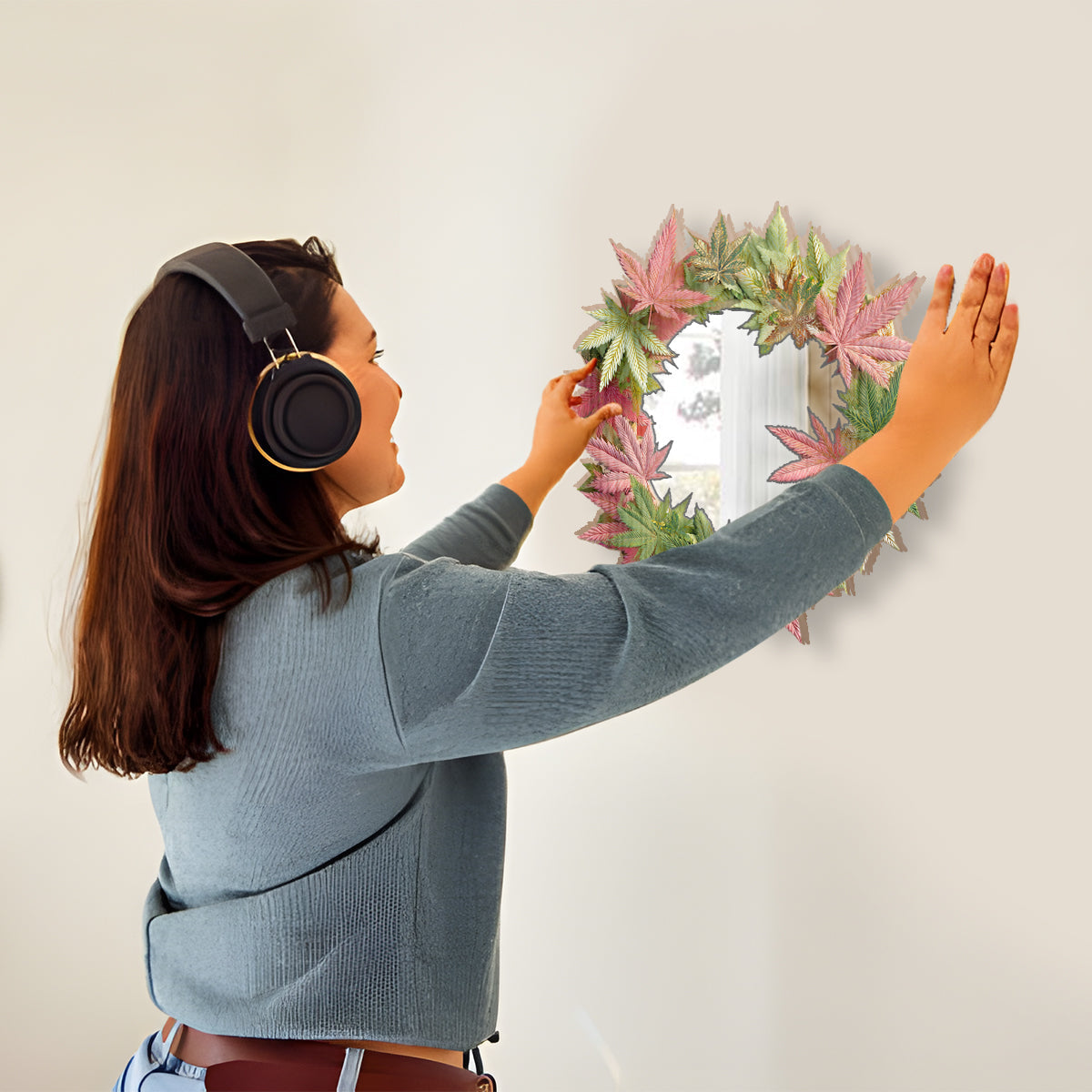 Pink Stoner Chick - Personalized Weed Wall Hanging Mirror