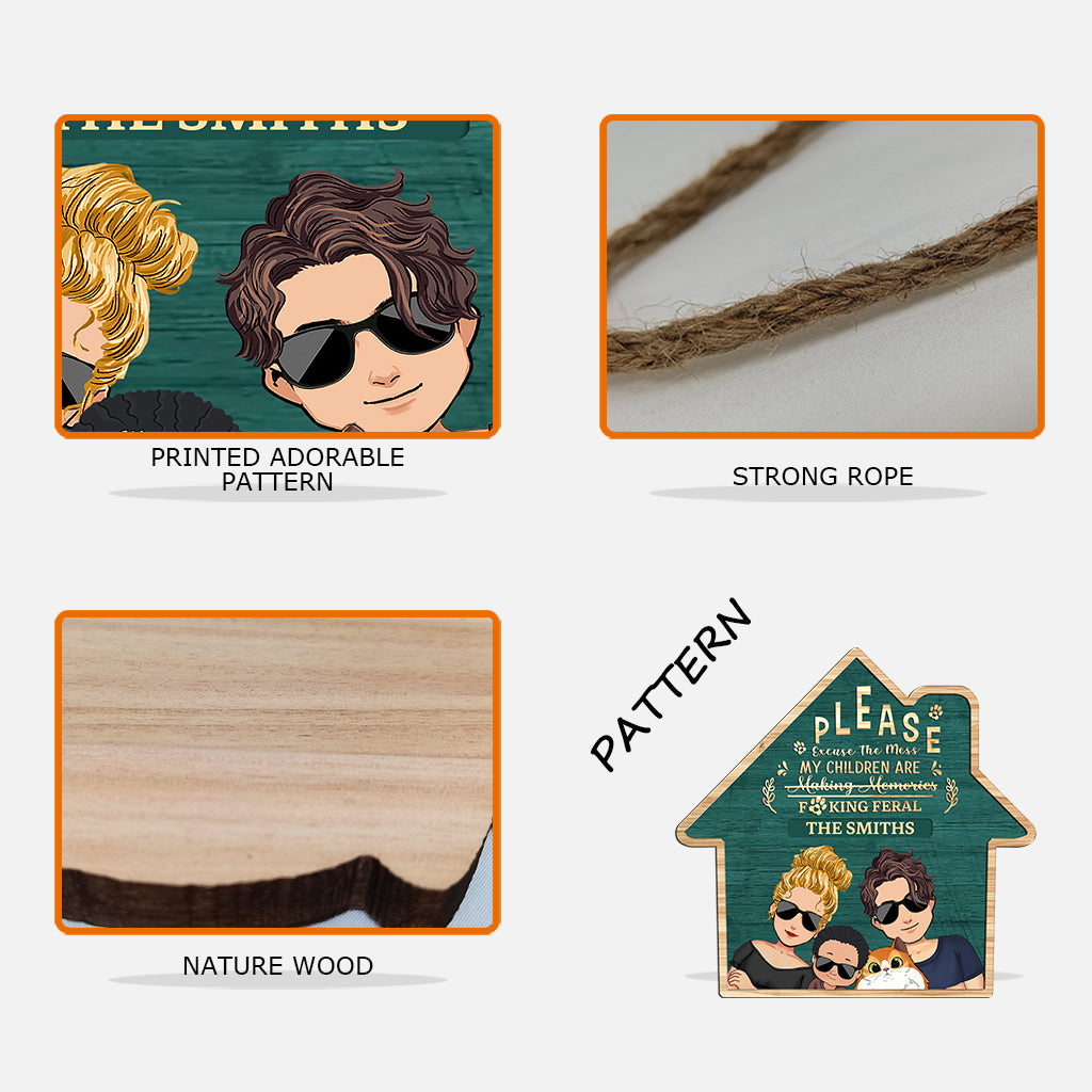 Please Excuse The Mess My Children Are Feral - Personalized Family Wood Sign