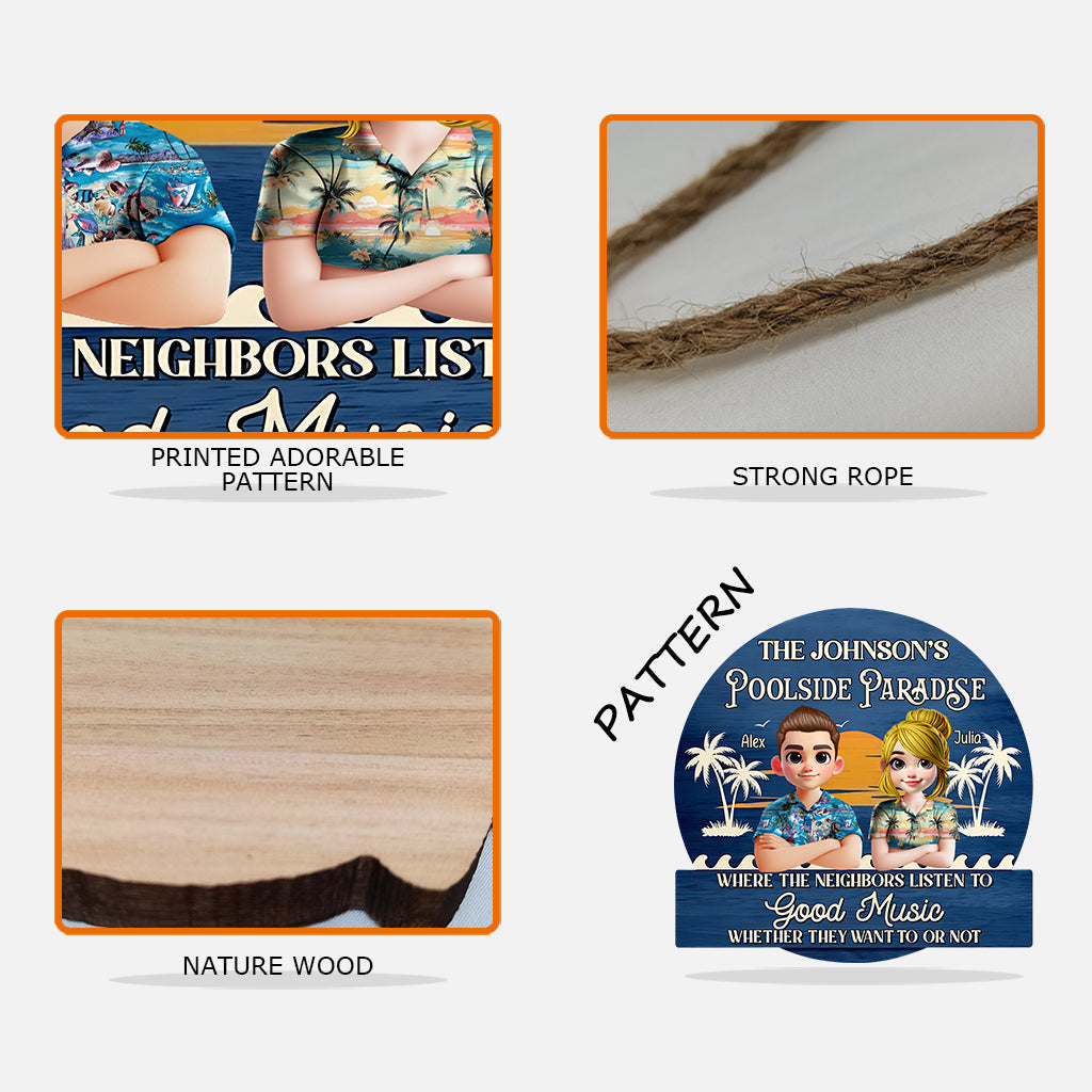 Poolside Paradise - Personalized Couple Custom Shaped Wood Sign