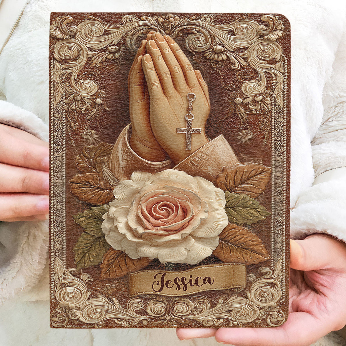 Praying Hands With Roses - Personalized Christian Leather Journal